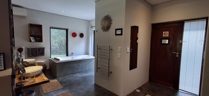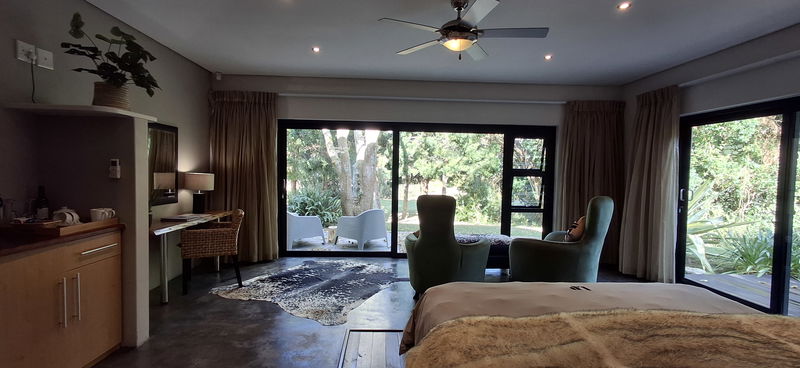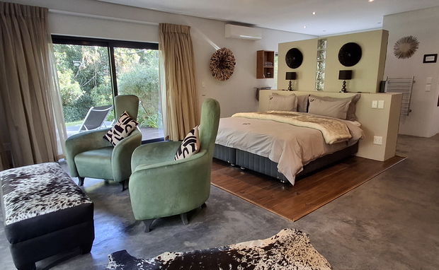 Unsere Honeymoon-Suite ist im modernen Afro-Zen-Stil eingerichtet und bietet eine Sitzecke, ein extra langes Kingsize-Bett mit hochwertiger Perkal-Bettwäsche, eine Selbstbedienungsbar, einen Kühlschrank, Tee- und Kaffeezubereiter mit Nespresso machine, einen CD-Player, und einen Safe.